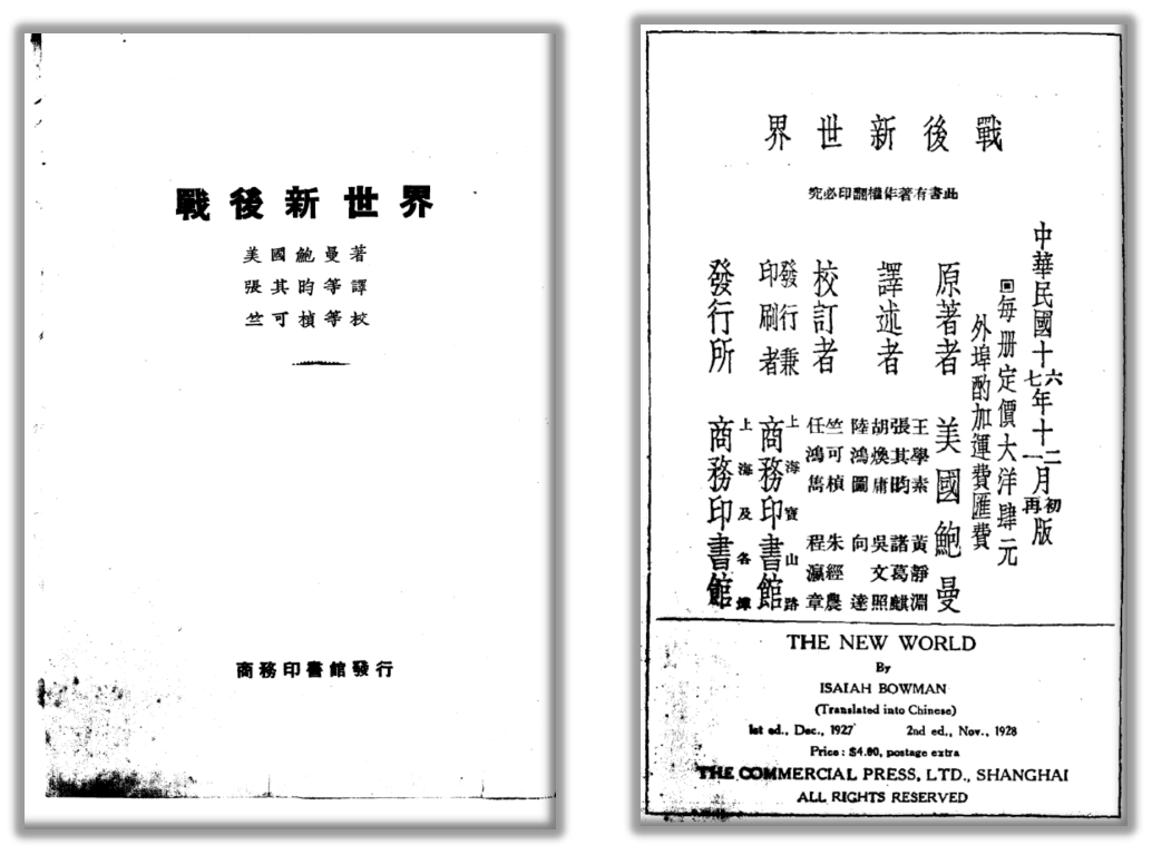 据胡焕庸自己回忆,1919年一战后召开巴黎凡尔赛会议,美国地理学家I.鲍曼担任美国威尔逊总统顾问,收集所有国际地理问题的资料,出版《新世界》一书。身为大学老师的竺可桢,“指导我们几个同学把这本书翻译成汉语,署名《战后新世界》,在商务印书馆出版,作为我们毕业的纪念。”值得一提的是,1922到1923年之间,胡焕庸还翻译了詹姆斯·费尔格里夫的名作《地理与世界霸权》——近些年,这个胡焕庸百年前翻译的版本,依然被多家出版社接连翻译出版。