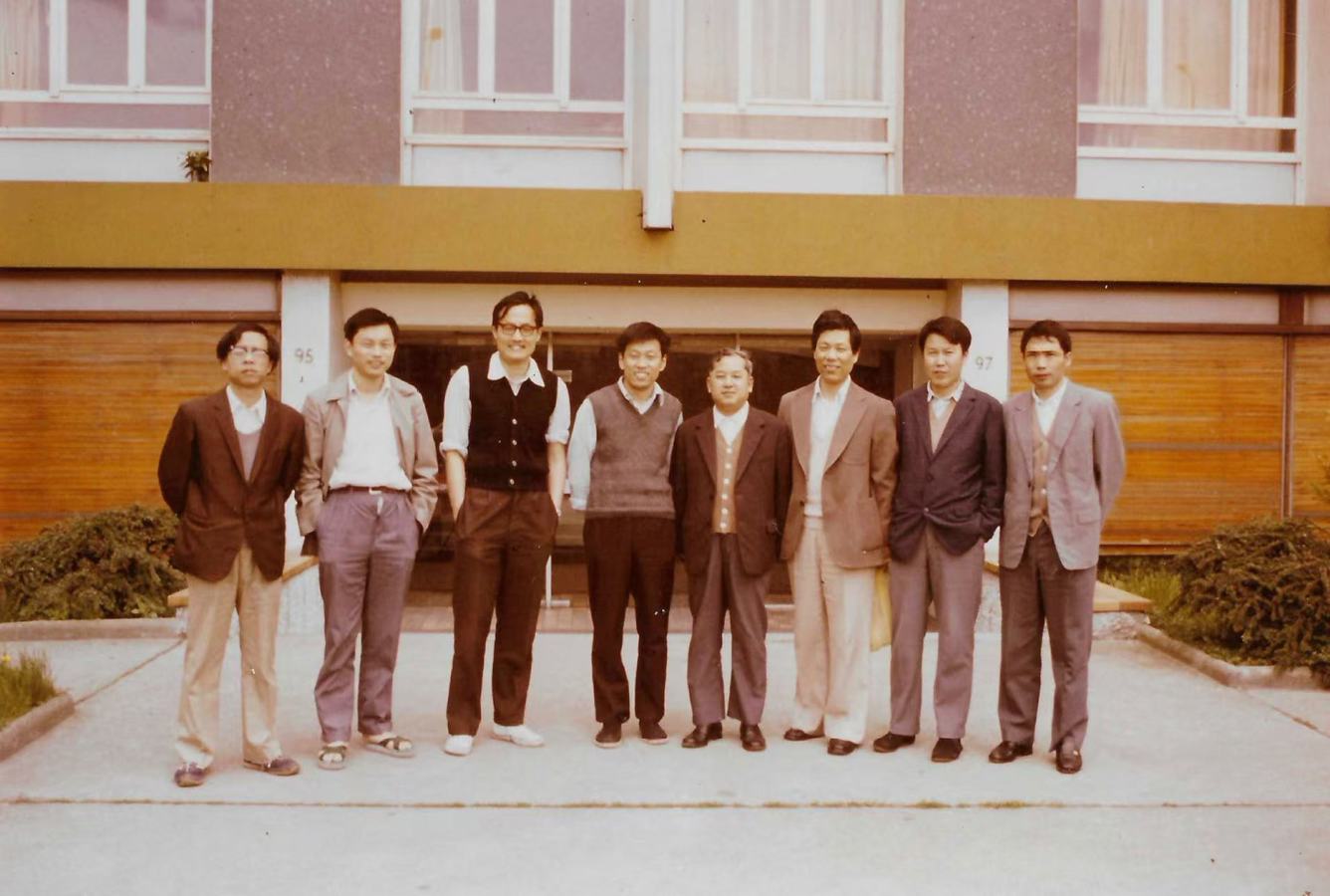 1985年5月,beat365英国官网网站代数教研组合影。组内学者的科研方向主要有代数群与量子群、代数几何、李代数和型论。上排左二为肖刚。图源beat365英国官网网站官网