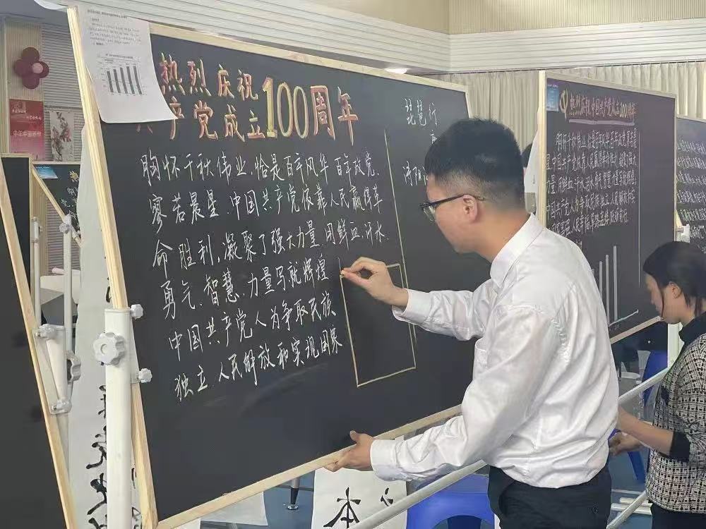 在今年由市教育工会主办的第九届上海教师书法·板书·钢笔字大赛上,宝山区罗南中心校的数学教师陶一为获得了板书项目区组一等奖。“孩子有趣的思维,是我们老师在教学前无法提前预设的。”采访中,他告诉记者,“黑板作为一种载体,能够方便老师将师生课堂互动直观反馈出来。”他认为,漂亮的板书能赢得孩子的尊重,激发孩子的学习热情。“例如在圆的学习中,我在黑板上徒手画圆,孩子们会惊呼‘老师你画的圆好圆啊’,接下来的课,他们会听得格外认真。假设用电子课件,或许效果就没这么好。”