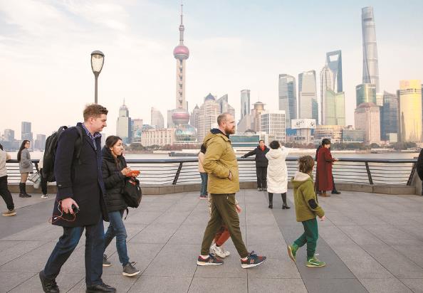 外国游客在逛外滩