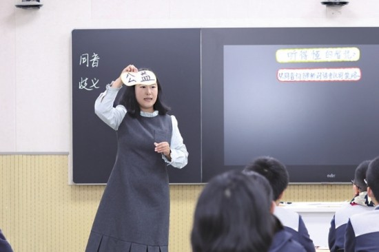 在老师端,前期将初中阶段所有教材的内容、新课标的内容做成资源录入平台后,从备课开始,老师的效率会明显提高。“老师备课很方便,比如选定某节课,可以直接在平台上找到课标,一方面可以规范老师的备课,另一方面也帮助老师更好地理解新课标。”夏红梅表示,这个平台上所有资源共享,年轻老师的整个备课环节可以得到其他老师的指导和修改,优秀老师的案例、备课过程也很方便其他老师学习。而从学校管理角度,也能清楚地看到老师教学上的投入度、成长度、认可度。“我们的教师平均年龄 只有34岁,这个平台可以帮助年轻教师快速成长。”