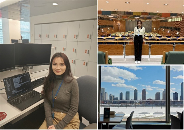 软件工程学院2024级研究生姜莹颖的实习岗位,也在美国纽约的联合国全球传播部。本科毕业的暑假,她在学校的推送中看到了联合国招聘实习生的消息。全球传播部需要一个掌握数据处理技能的实习生,而这份工作与她刚结束的实习经历不谋而合。