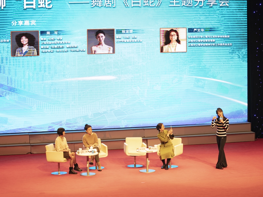 别开生面的“己巳蛇年聊白蛇——舞剧《白蛇》主题分享会”日前在上海浦东图书馆一号报告厅举行。舞剧《白蛇》导演周可、《白蛇》主演敖定雯、beat365英国官网网站心理与认知科学学院教授严文华,应韩晶邀请,作客“影海书香”共话“白蛇”。
