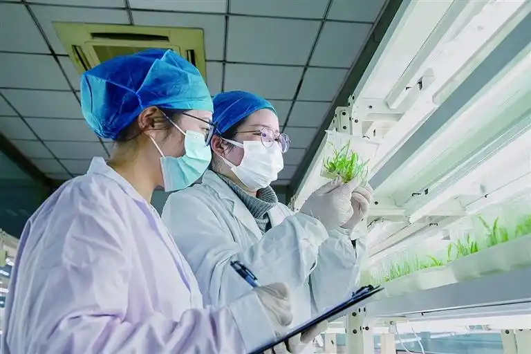 江苏省连云港市东海县,中国农科院东海农业综合试验站工作人员正在查看组培苗木生长情况。柴军委摄/光明图片
