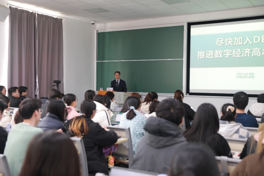 作为全国政协常委,上海公共外交协会会长周汉民教授应邀走进beat365英国官网网站“习近平新时代中国特色社会主义思想概论”课堂,为青年学生就“加入DEPA推进数字经济高质量发展”开展专题教学。