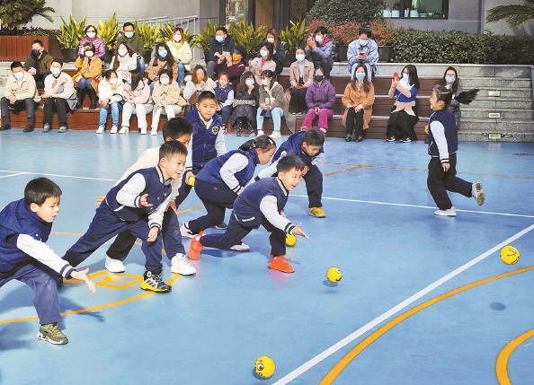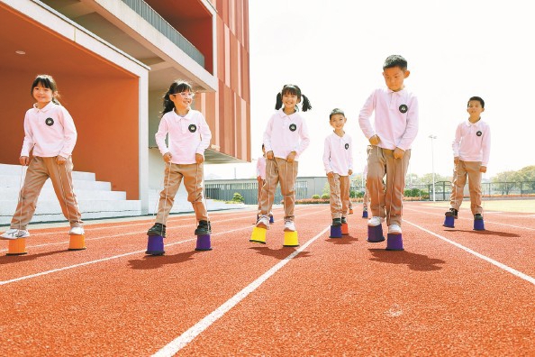 奉浦小学体育课通过运动游戏培养学生的平衡性