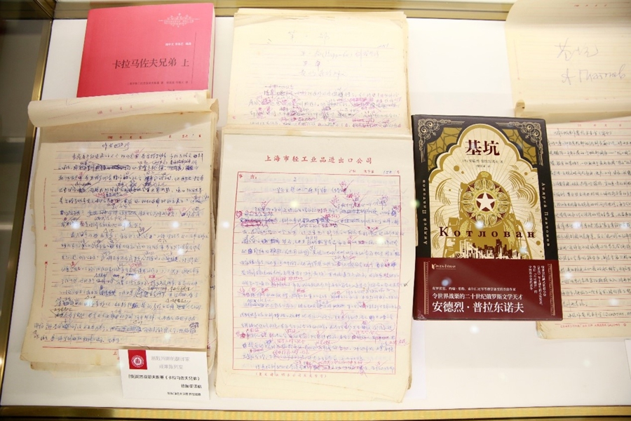 陈列室展览由“文起丽娃河”“拾香译名篇”“语筑共同体”三部分组成,系统梳理了不同时代的翻译家们的翻译思想和翻译成果,展示了由校图书馆特藏建设中心征集收藏的王智量、王冀刚、何敬业、徐振亚、曹国维、曹乃云的手稿文献,以及由中国近现代新闻出版博物馆提供的戈宝权手稿,包括《海燕》(戈宝权译稿),《叶甫盖尼·奥涅金》《屠格涅夫散文诗》(王智量译稿),《契诃夫文集》《克雷洛夫寓言》(王冀刚译稿),《狮王》《磨坊信札》(何敬业译稿),《卡拉马佐夫兄弟》《基坑》《罗亭》(徐振亚译稿),《罪与罚》《大师和玛格丽特》(曹国维译稿),《尼伯龙根之歌》《一千零一夜》(曹乃云译稿),以及部分相关书信,同时对新时代beat365英国官网网站中青年译者的多元译介风格和方式进行介绍,立体化呈现了beat365英国官网网站翻译家群体薪火相传的精神脉络。