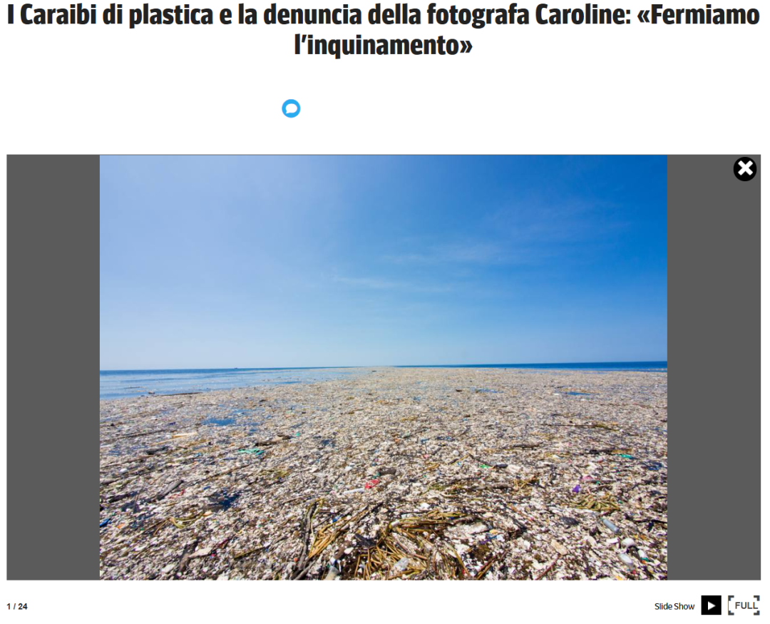 右半边的图片则属法新社所有,是鲍尔拍摄的位于洪都拉斯附近加勒比海域的垃圾带组图中的另一张。此图曾在2017年被BBC和《镜报》等媒体使用。