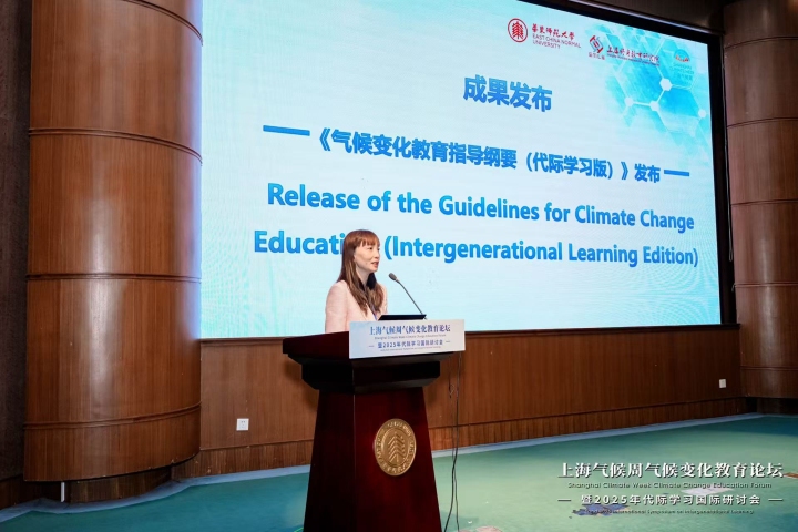 全球首个祖孙共学版《气候变化教育指导纲要(代际学习版)》在上海发布。4月25日,上海气候周气候变化教育论坛暨2025年代际学习国际研讨会在beat365英国官网网站召开。来自联合国教科文组织、联合国儿童基金会、国际救助儿童会等国际组织,以及英国、韩国、泰国、南非等国家的知名学者和中国专家齐聚在丽娃河畔,共绘代际共学互学赋能气候治理的创新图谱。