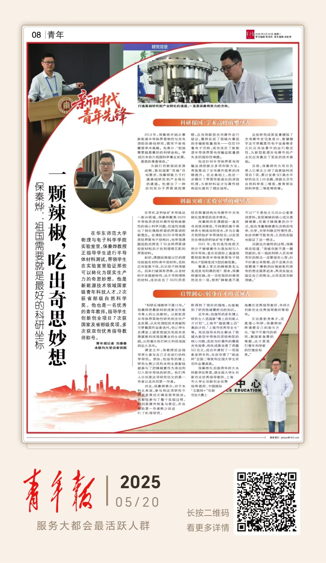 无论是躬身育才,还是潜心科研,保秦烨始终清楚自己的奋斗方向:“做不可替代的研究,解国家急需的难题,这才是我们青年科学家的价值坐标系。”