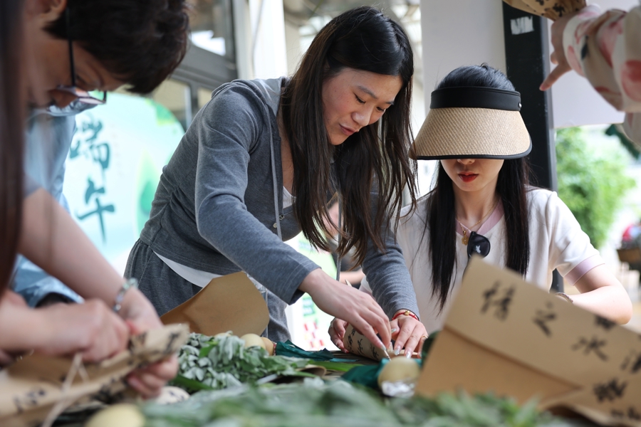 活动由端午文化对话沙龙、两岸学生与台胞台属结对包粽子、习俗游园会三部分构成。其中,独具民俗文化特色的游园会活动,让参与者沉浸式体验了端午节传统文化。