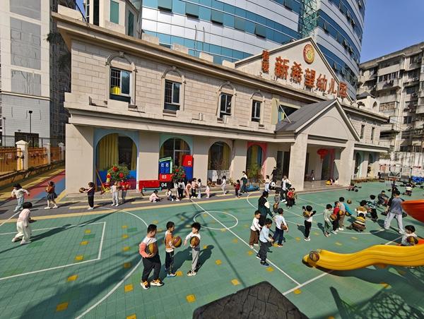 4月8日,春暖新希望幼儿园,孩子们在操场上活动。受访单位供图