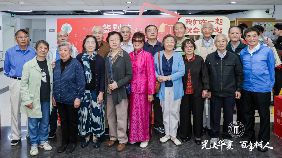 校史长廊前人头攒动。一幅幅泛黄的照片、一页页斑驳的手稿,将百年的筚路蓝缕娓娓道来。校友们驻足于“1925-2025时光隧道”前,指尖轻触电子屏,光影流转中,欧阳路的青砖、中州路的梧桐、虹关路的玻璃幕墙次第浮现,引来阵阵惊叹。更有三代同堂的校友家庭,在“校庆打卡墙”前合影,祖孙三代的毕业照被AI技术巧妙合成,演绎出一场跨越世纪的对话。当天,校庆在线直播观看人数近3万人。