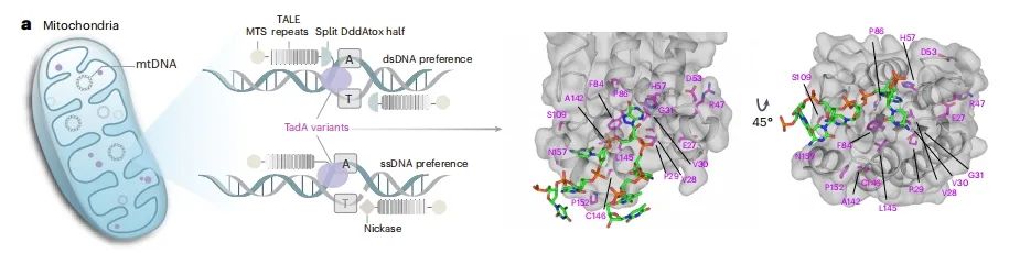 在第一项研究工作中,研究团队经过分析和实验推测,腺嘌呤脱氨酶TadA-8e的活性是决定线粒体基因组中腺嘌呤(A)编辑为鸟嘌呤(G)性能的关键因素之一。
