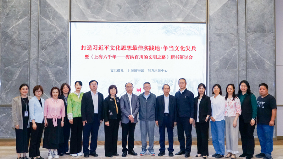 6月11日,文汇报社、上海博物馆、东方出版中心联合举办了“打造习近平文化思想最佳实践地·争当文化尖兵暨《上海六千年——海纳百川的文明之路》(下简称“《上海六千年》”)新书研讨会。组编和出版方与十余位专家围绕上海六千年发展历程在中华文明连续性、统一性、创新性、和平性、包容性展示中的独特贡献,展开深入研讨。