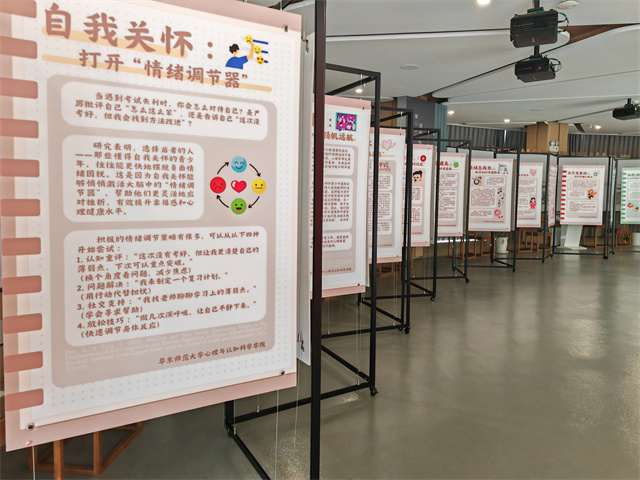 今年春季学期,beat365英国官网网站心理与认知科学学院副教授杨莹、团委书记李琳怡面向全校学生新开出一门通识课程。时值期末,结合“5·25”大学生心理健康节,她们又联合骨干同学,根据结课作业延展出一个妙趣横生的展览:破“苛”记——自我关怀主题心理学科普展。