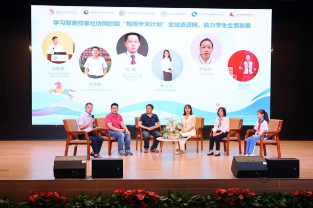 在深圳市光明区家庭教育指导服务中心副主任朱胜源主持下,多方代表通过圆桌论坛形式,共议深圳市教育创新改革“每周半天计划”在马田小学的落地实践和启示。