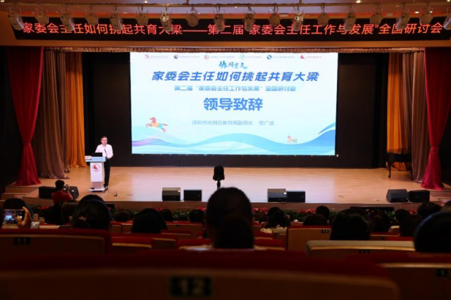 深圳市光明区教育局副局长曾广波在致辞中强调:“新时代教育需要家庭、学校、社会结成共同体,家委会主任正是激活这一生态的关键引擎。”