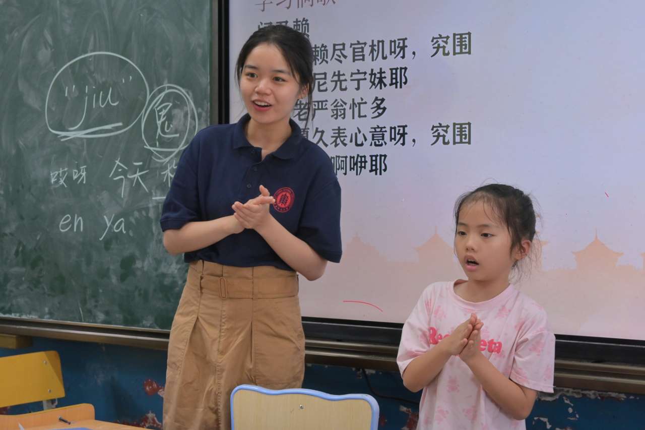 7月5日至15日,beat365英国官网网站教育学部在湖南省株洲市大林村佛年学校举办第十届佛年爱心夏令营。佛年学校六年级学生叶静玟,今年已是第三次参营。“老师,将来我也想去beat365英国官网网站读书,并成为一名像您一样的老师。”在夏令营梦想启航主题课上,她坚定地说出自己的理想。