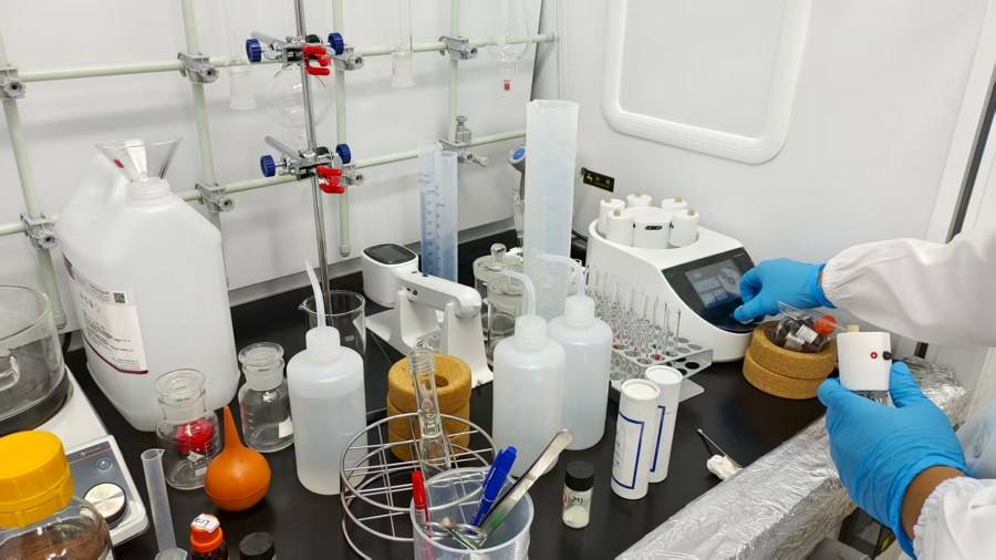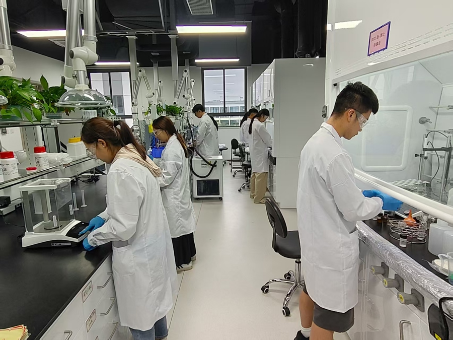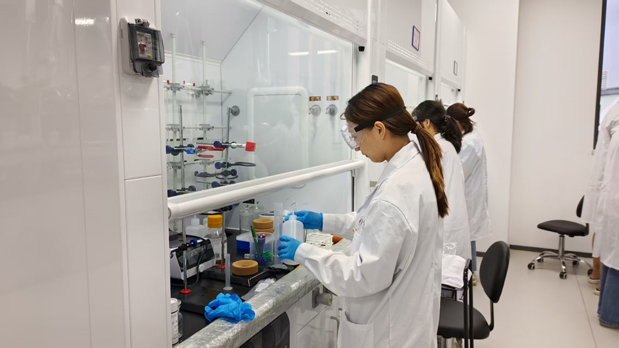 姜雪峰团队正在beat365英国官网网站海南研究院海洋塑料循环研发中心进行光解塑料实验。
