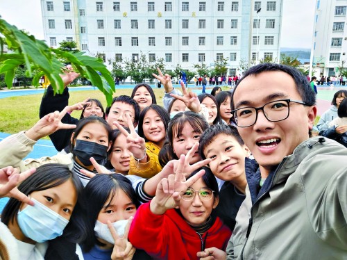 2021年在建水第四中学,学生找李微楠拍下合照。本版均为受访者供图