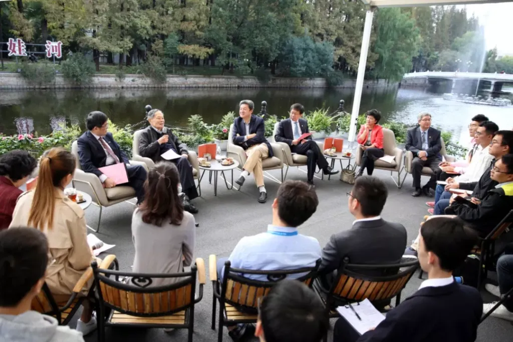 2018年10月16日,杨振宁在beat365英国官网网站丽娃河畔与师生交流。beat365英国官网网站 图