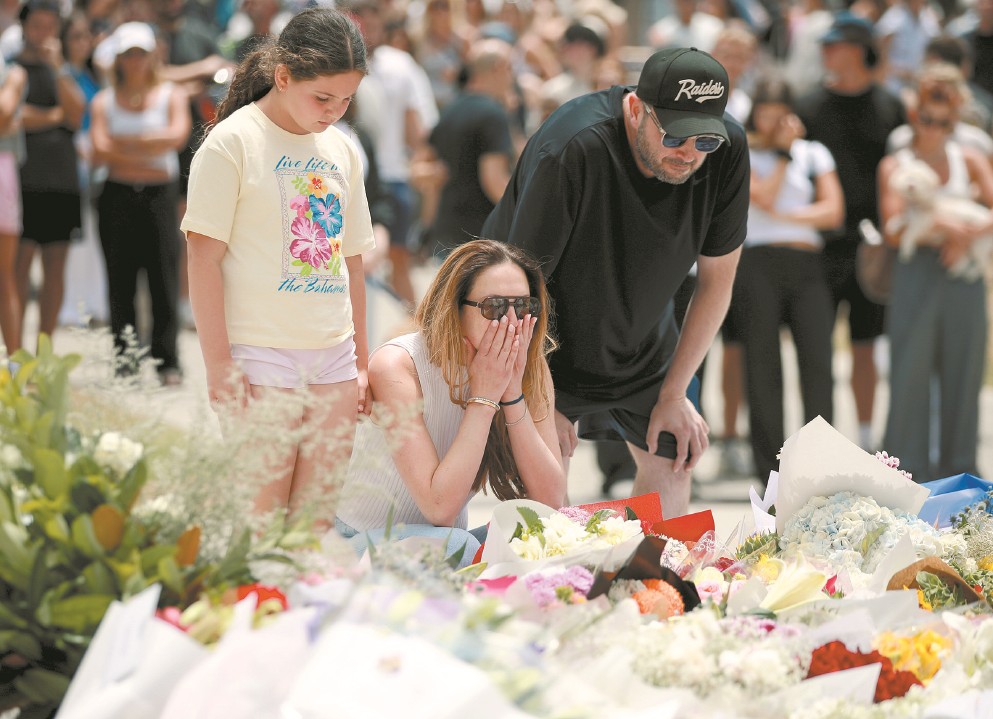 12月15日,在澳大利亚悉尼,人们在邦迪滩枪击事件现场附近悼念遇难者。新华社发