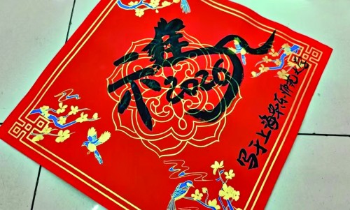 除了写春联福字,现场师生还共创《花开四季》《锦绣河山》等国画,沉浸式领略传统国画的笔墨意境。一幅幅精巧的剪纸作品在亲手尝试折纸、运剪中诞生,在轻盈精美的雪花纹样、“马上有福”等年味意象里,溢满传统手工艺的温度与趣味。