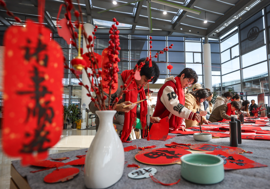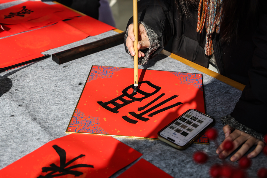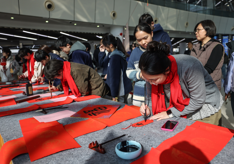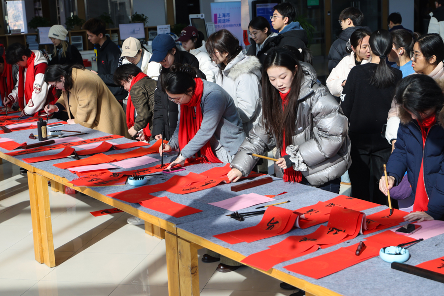 上观新闻丨【场面】大学校园设点“人人写春联”,挥洒笔墨迎马年