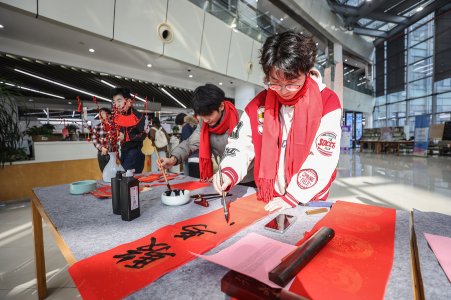 现场被鲜艳的大红色渲染得喜庆而热烈,大家沉浸在墨香和笔锋之间,期待即将到来的2026农历马年。方寸纸墨之间,寄托着同学们和老师们对个人生活的美好祈愿,也有对学校发展、国家繁荣的赤诚祝福。
