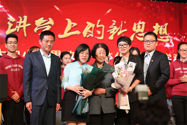 “第一天是上海市大中小思政课观摩活动,于老师做了亲切的点评和鼓励,我作为青年教师给于老师献花。更难忘的是,第二天我和于老师一起录制一档节目。”