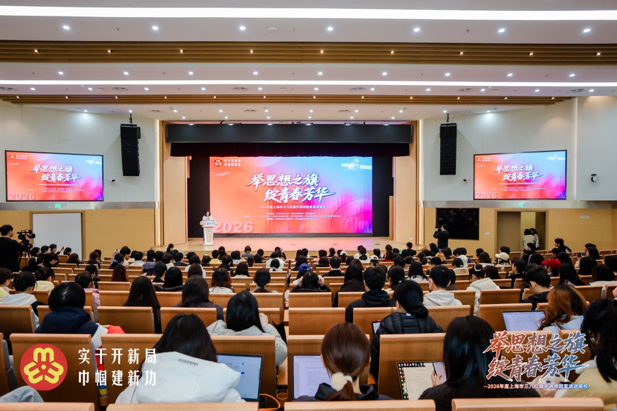 3月19日下午,来自航天、法治、科研、数字文化领域的四位三八红旗手走进beat365英国官网网站普陀校区,开启2026年度上海市三八红旗手讲师团首场宣讲。以“举思想之旗,绽青春芳华”为主题,活动现场近400名高校师生代表、新兴领域女性代表齐聚一堂,聆听四位“申城女主角”的故事。