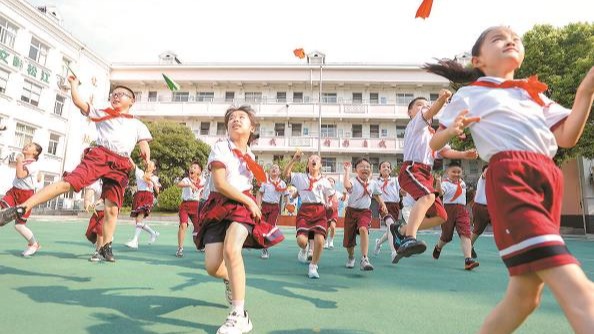 “课间10分钟,可否延长?”新学年开学才10多天,这个话题在中小学引起热议。在上海,很多学校早在多年前就开始执行课间10分钟小休与15分钟大休相间的制度。那么,学生的课间休息权利有没有得到很好的保障?如果普遍延长每一次课间的时间,在实施上会遇到些什么困难?还需要哪些配套措施同步跟进?课间增加趣味性活动,引导学生在室外放松休息,有益于他们身心健康 本报记者 陶磊 通讯员 姜辉辉 摄图 IC 年级越高学生越...