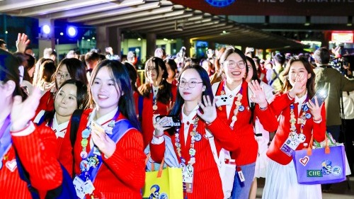 “谢谢你们!”“‘小叶子’辛苦啦!”“我们明年见!”……11月10日晚,第八届进博会志愿者离园仪式在国家会展中心(上海)东登录厅温情举办。伴着一首首青春旋律,各学校志愿者陆续列队从场馆走出。据统计,11月5日至10日进博会展会期间,“小叶子”累计上岗2.3万人次,累计服务57.8万人次。8年来,已累计有3.8万余名“小叶子”服务进博、实现成长。 总有一道光要去追随 你愿意为了成为一名“小叶子”努力多久?...