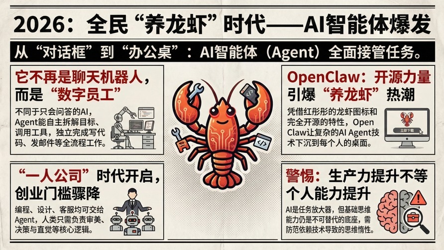 【话题主持】新民晚报记者 易蓉 Agent的出现并非偶然,而是AI技术发展的必然结果。 “数字龙虾”最近爆火,拉开了Agent(智能体)时代的帷幕。AI正以超乎想象的速度从“会说”进化到“会做”,从拆解任务、调用工具到彼此对话,甚至能构建属于自己的社交网络。 同时,一个更深的诘问也随之浮现:当人人都拥有了数字分身,当Agent获得了更多数据和权限,AI替我们思考、决策、行动的时候,人类何以处之? 最近,如果...