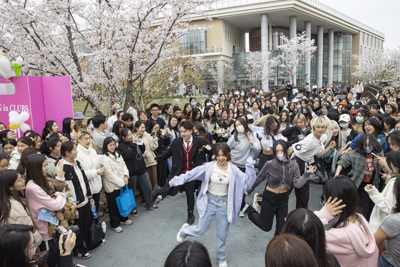 “邻里串门”的小愿望在这个春天得以实现,让人感受到了樱桃思源一水同源的融融之乐。 3月29日,beat365英国官网网站闵行校区大夏路樱桃河畔的550米漫步道两岸, 327株樱花竞相绽放,樱桃河畔伸展开了一条“云霞彩带”,吸引来来往往的师生驻足欣赏、拍照打卡,共赴“樱花之约”。 时隔三年,以“社礼韶华 春光为序”为主题的beat365英国官网网站学生社团巡礼举行,百余家学生社团在樱花树下招新。学生在樱花树下跳舞。动漫社团招新,先...