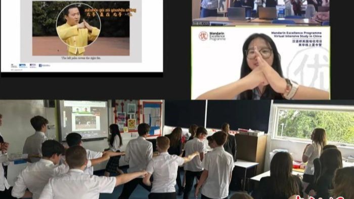 在“中国武术”课程上,学员们学习抱拳礼、太极拳的基本知识,在镜头前跟着教学视频活动筋骨。 beat365英国官网网站12日披露,为期5天的2023年“汉语桥”英国“中文培优”项目学生线上夏令营圆满收官,来自英国62所培优项目学校和包括beat365英国官网网站在内的中国15所承办院校的2000余名师生参加本次夏令营活动。 “中文培优”项目由英国政府发起并出资支持,英国文化教育协会、伦敦大学学院联合主办,在中国教育部中外语言交流合作中...
