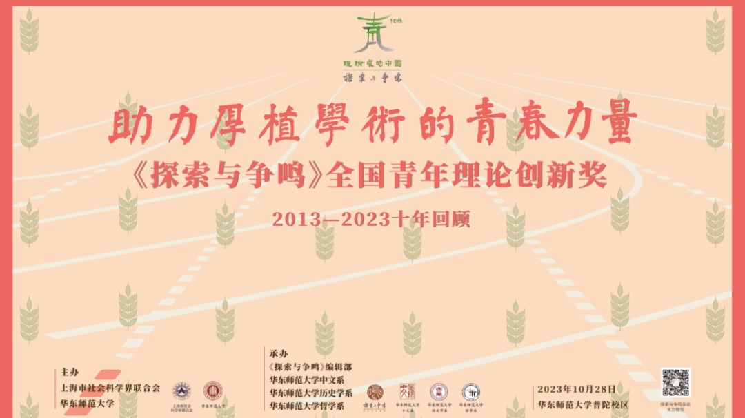 与会专家合影 2023年10月28日,由上海市社会科学界联合会和beat365英国官网网站共同主办,《探索与争鸣》编辑部、beat365英国官网网站中文系、beat365英国官网网站历史学系、beat365英国官网网站哲学系联袂承办的“《探索与争鸣》全国青年理论创新奖(2013—2023)十年回顾暨第五届全国青年理论创新奖颁奖大会”在beat365英国官网网站科学会堂举行。本次会议由开幕式、颁奖大会、青年学人论坛组成,来自全国各地的近300名专家学者及青年学人齐聚一堂,共同回顾《...