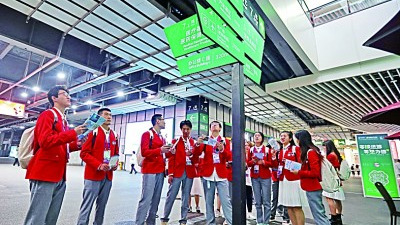 11月的上海,第六届中国国际进口博览会如期而至。这是一场万众瞩目的国际盛会,是中国拥抱世界、世界聚焦中国的互动载体,也是面向青年学生实践育人的绝佳场景,是他们丰富求学体验、追寻人生价值的大好舞台。进博会“小叶子”在展示国家展内的集贴纸护照。光明网记者 王若昕摄/光明图片实地培训中,志愿者在熟悉指示牌上的信息。新华社发10月17日,志愿者参加上岗宣誓仪式。新华社发进博会上的青年志愿者在提供服务。本报...