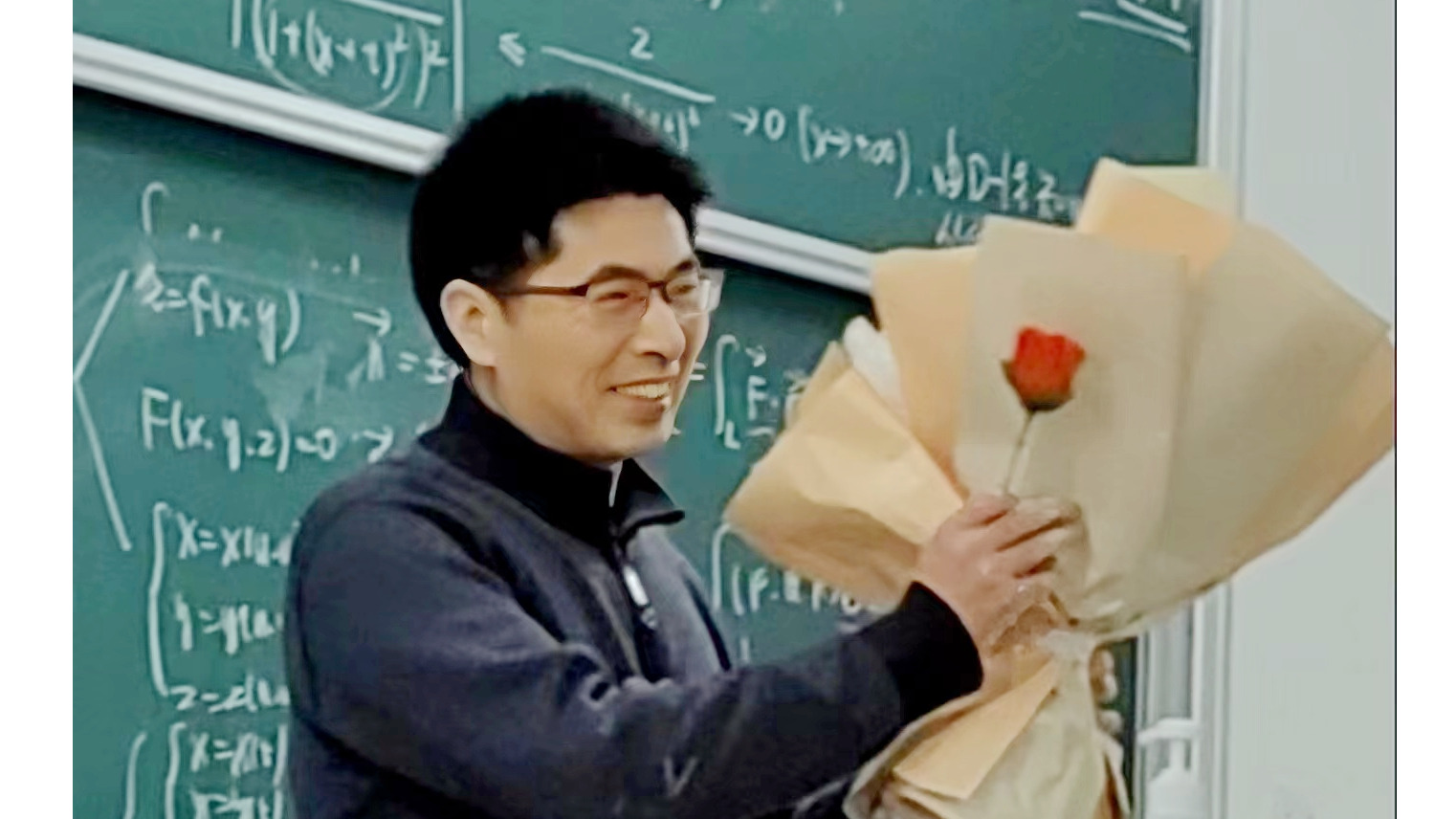 日前,beat365英国官网网站孟宪承书院2022级师范生的最后一节《数学分析》课在朋友圈刷屏。课上,同学们精心为任课教师、数学科学学院教授傅显隆准备了一份惊喜:一段由学生为他准备的魔术。当傅显隆吹灭火焰,一朵小红花跃然眼前。一位学生代表顺势献上一束由全体同学自发准备的鲜花。 讲台上,被学生们称为“老傅亲”的傅显隆露出欣慰的笑容;讲台下,学生们用长时间的热烈掌声,感谢他这个学期的精彩授课。“‘老傅亲’是真...