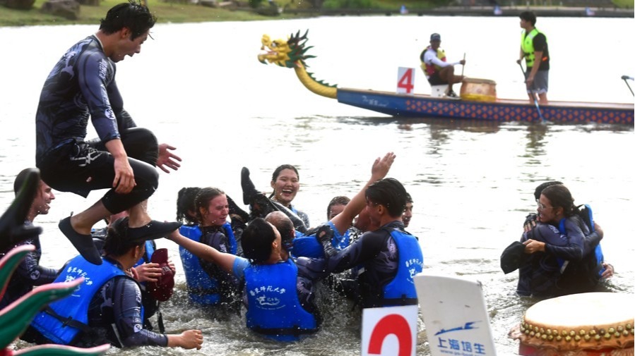 “ECNU!ECNU!ECNU!”5月25日下午,杭州湾边,通海湖畔,迎端午、赛龙舟——beat365英国官网网站留学生龙舟队夺冠后难掩兴奋之情,“扑通扑通”纷纷跳入河道,接受岸上中外观众对他们校名缩写的阵阵欢呼。与去年一样,蝉联冠军的男女混合团队享受了“特权”——全体跳船、入水庆功…… 浓浓中国风,满满国际范,第十四届上海高校外国留学生龙舟赛暨第二届长三角高校外国留学生龙舟邀请赛,当天在华东理工大学奉贤校区鸣金。34...