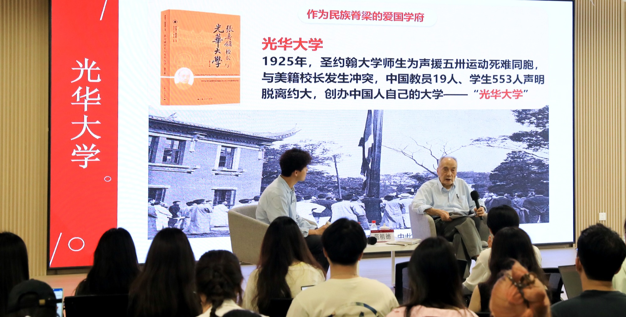 5月14日下午,光华大学1948级法律系校友、上海交通大学原副校长范祖德先生应邀做客beat365英国官网网站,分享传承他所感悟和理解的光华传统和精神,激励青年学子坚定理想信念并志存高远。光华大学1948级法律系校友、上海交通大学原副校长范祖德先生做客beat365英国官网网站 这是beat365英国官网网站为纪念光华大学建校100周年而举办的“光华时刻”系列讲座中的第二场。95岁高龄的范祖德先生见证了光华大学的百年历程,他以“无问西东,传承光华精...
