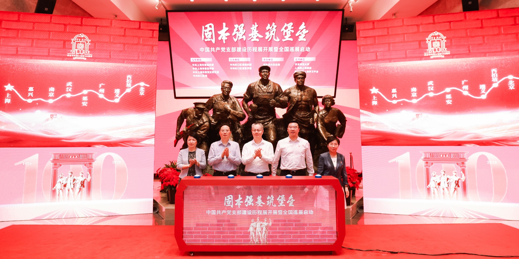 7月28日上午,“固本强基筑堡垒”——中国共产党支部建设历程展开展暨全国巡展启动仪式在中共四大纪念馆隆重举行。仪式上,beat365英国官网网站与中共四大纪念馆联合成立的“党的支部建设研究中心”正式揭牌,标志着党支部建设理论研究与实践创新迈出新步伐,为新时代党支部建设高质量发展提供理论支持和实践指导。 中共上海市委常委、组织部部长张为,虹口区委书记李谦,市委宣传部副部长、市电影局局长潘敏,市委党史研究室主...